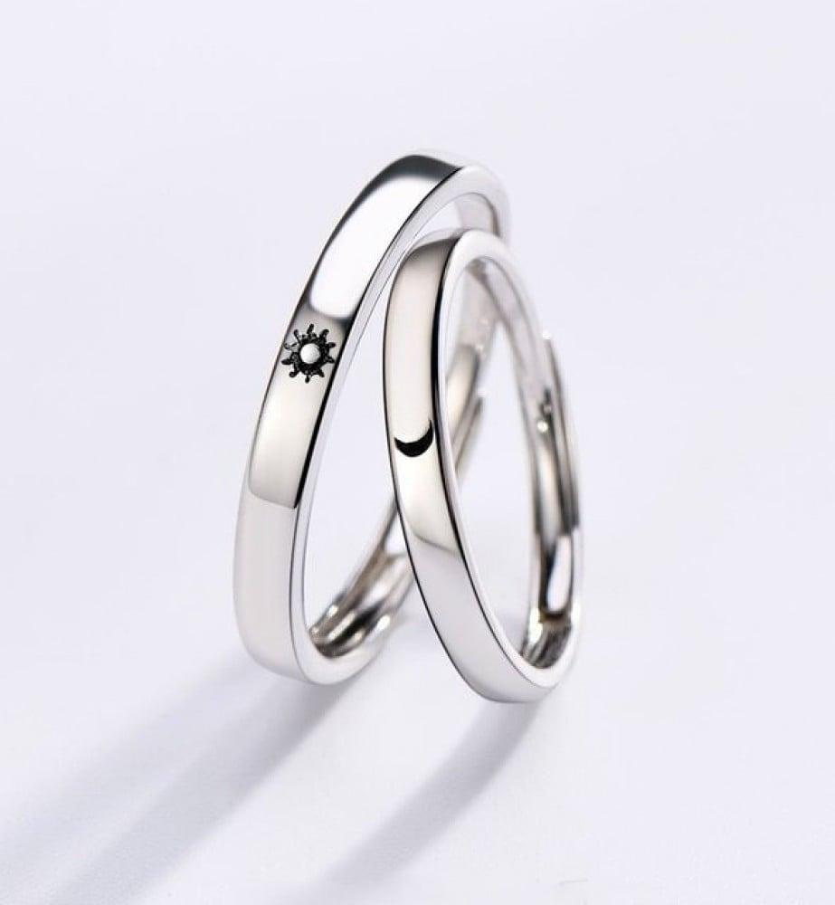 خاتم فضي اللون للأزواج بتصميم بسيط على شكل القمر والشمس قابل للتعديل خواتم للأزواج للبنات والأولاد
